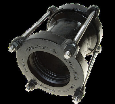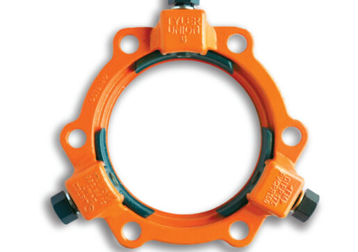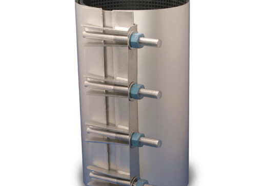 Accessoire pour la réparation complète d’un bris circonférentielle, d’une fissure, d’un trou ou autres dommage sur une conduite de fonte ductile, d’acier, de plastique ou autre.